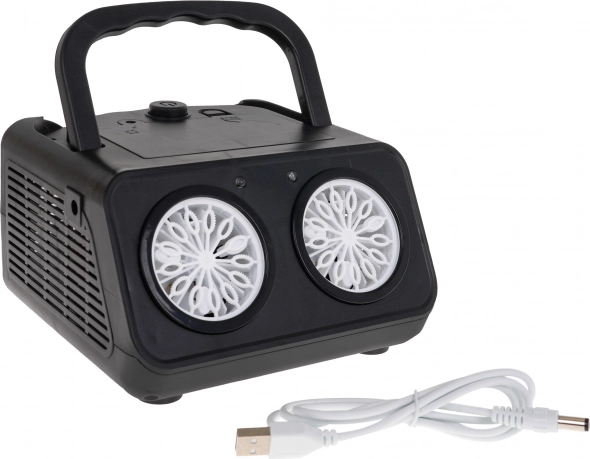 Générateur de bulles à deux buses pour enfants à partir de 3 ans, adolescents et adultes. Un puissant générateur de bulles qui égayera toute fête. Après avoir versé un liquide spécial ou de l’eau savonneuse, des bulles de savon colorées sortent des deux buses et sont dispersées par un ventilateur silencieux intégré. Les bulles sont en outre éclairées par deux LED placées près des buses. L’appareil fonctionne avec 4 piles AA 1,5 V, piles non incluses. La machine est équipée d’une poignée de transport pratique. Spécifications : - poignée de transport, - compartiment pour le réservoir de liquide, - protection contre les déversements incontrôlés, - éclairage à la sortie des bulles, - ventilateur silencieux. |