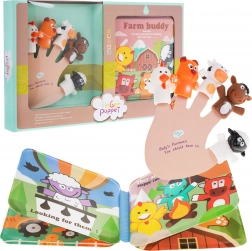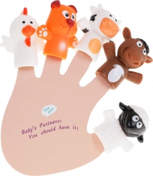 - 5 marionnettes à doigt en caoutchouc, 1 livre souple