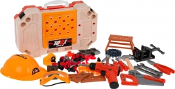 Le set inclut une large palette d’outils en plastique (scie, marteau, pince, tournevis, clés), un étau, des engrenages, des éléments d’assemblage et un équipement de protection (lunettes, casque). Les enfants s’entraînent ainsi en toute sécurité à la motricité fine, à la coordination œil-main et à la pensée logique, tout en s’amusant avec de jeux d’atelier simulés.