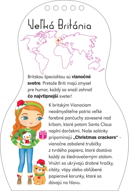 Un livre créatif pour enfants qui propose des coloriages de Noël, plein d’autocollants et de l’inspiration venue des quatre coins du monde. Les petits lecteurs découvriront comment on célèbre Noël au Royaume-Uni, en Norvège, en France, en Roumanie et en Russie, et créeront d’innombrables tenues de Noël. En bonus, un joli bracelet porte-bonheur est inclus.