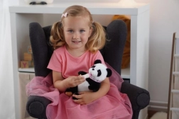 Cette panda toute douce est un partenaire idéal pour les câlins et le jeu. Grâce à la simple interaction avec le biberon, les enfants peuvent s’essayer aux soins et développer l’empathie ainsi que la motricité fine. La panda possède une surface en peluche douce et reste assise confortablement, parfaite dans la chambre d’enfant comme en voyage.
