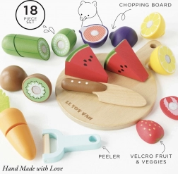 - 18 pièces (env. 15 aliments avec velcro, planche, éplucheur, couteau)