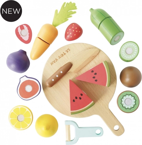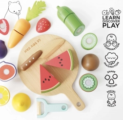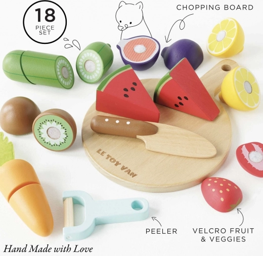 Découvrez la magie du jeu en cuisine avec cet ensemble en bois de 18 pièces de Le Toy Van. Les enfants peuvent « couper » les aliments en toute sécurité grâce au velcro, entraîner leur motricité fine et développer leur imagination et leurs compétences sociales. Fabriqué en bois certifié FSC et peint avec des peintures à l’eau non toxiques – sûr, durable et respectueux de la nature.
