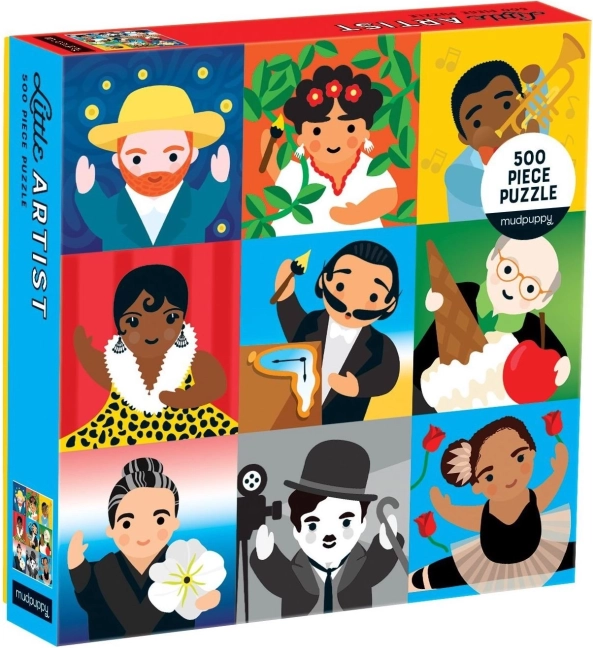 Puzzle familial Petit Artiste de la marque Mudpuppy, idéal pour les amoureux de l’art. Il contient 500 pièces avec des illustrations de personnalités célèbres qui ont influencé différents domaines artistiques.