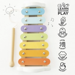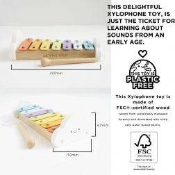 La fabrication en bois certifié FSC et la finition avec des peintures à l’eau non toxiques garantissent sécurité et durabilité. Jouer du xylophone encourage l’exploration des tonalités et renforce la coordination œil‑main.
