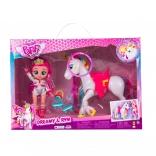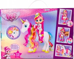Avec la poupée BFF Dreamy et sa licorne Rym, jouer devient encore plus amusant. La corne de Rym s’illumine et émet des sons lorsque tu appuies sur sa tête. C’est un moment magique, et le revivre est super divertissant, d’autant plus que Rym peut produire six sons différents. Dreamy et Rym peuvent prendre des poses amusantes. Dreamy a de longs cheveux colorés et brillants, des yeux en verre, et sa tenue rappelle une patineuse artistique. Le set comprend également des roulettes pour que Dreamy puisse faire semblant de patiner, ainsi qu’une selle pour que Dreamy puisse aussi monter sur le dos de Rym. Vis des aventures uniques avec Dreamy et Rym !