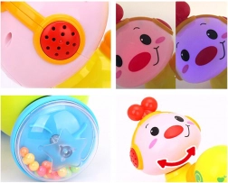 Des perles colorées dans les roues créent un effet visuel et sonore pendant qu’elle roule. Le jouet est ainsi encore plus attrayant et stimulant.
