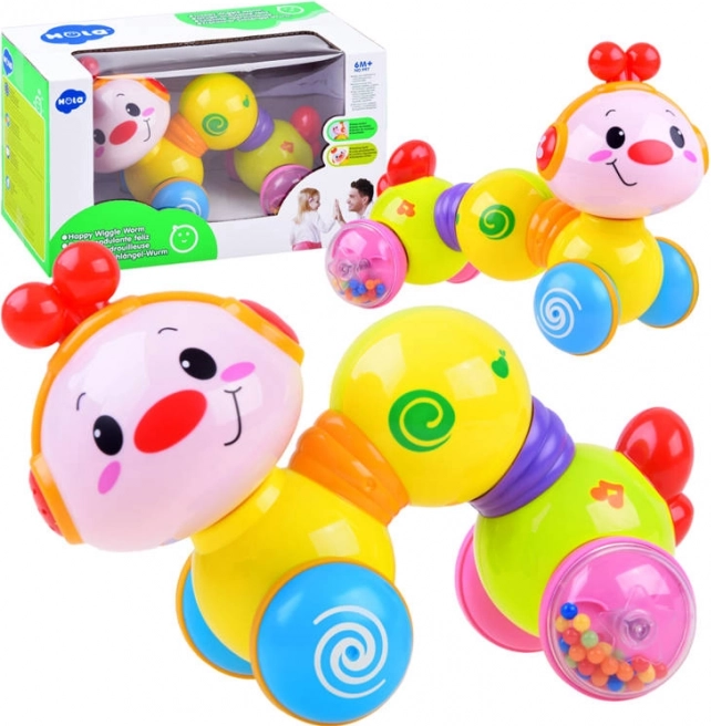 La chenille interactive à roulettes Happy Wiggle Worm est un jouet idéal pour les bébés et les tout-petits. En appuyant sur son dos, la chenille s’étire et avance sur les surfaces planes, tandis que sa tête change de couleur et diffuse de douces mélodies. Sa tête rotative stimule la curiosité et la motricité fine.