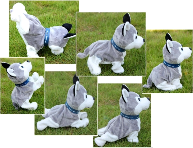 Après une caresse, le husky produit des sons et des mouvements réalistes – il aboie, gémit et entraîne les enfants dans le jeu avec l’animal.