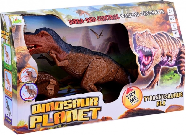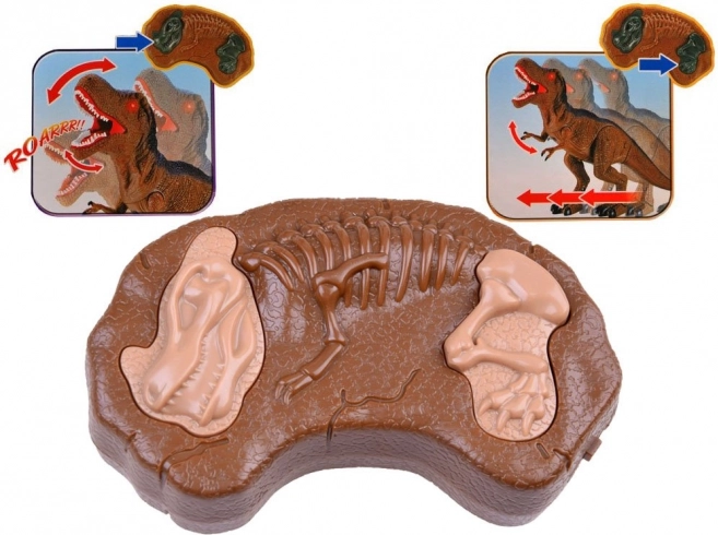 En appuyant sur le bouton, le T‑Rex avance en douceur, accompagné de grondements puissants qui renforcent l’atmosphère de chasse préhistorique.