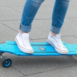 Le deck en polypropylène très résistant est à la fois léger et solide ; sa texture antidérapante et ses bandes de grip apportent de l’assurance pendant la ride. Les trucks en aluminium 7", les grandes roues PU 70 × 51 mm et les roulements ABEC 7 offrent un roulement fluide, une bonne absorption des irrégularités et des virages précis.
