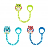 La chaîne comporte un clip pratique qui permet une fixation solide et stable aux vêtements de l’enfant et protège la tétine contre la saleté ou la perte. Mode d’emploi : Maintenez propre. Avant la première utilisation et ensuite occasionnellement, lavez la chaîne à l’eau tiède et rincez. Ne pas faire bouillir. Conservez dans un endroit propre. Fixez la chaîne uniquement aux vêtements de l’enfant. Attention ! Important pour la sécurité et la santé de votre enfant ! Vérifiez l’état du produit avant chaque utilisation. Aux premiers signes d’usure ou de dommage, cessez de l’utiliser et remplacez-le par un neuf. Ne rallongez jamais la chaîne. N’attachez jamais la chaîne à des rubans, dentelles, cordons ou parties libres des vêtements. L’enfant pourrait s’étrangler. N’utilisez pas la chaîne lorsque l’enfant se trouve dans un lit/berceau ou s’il n’est pas sous la surveillance d’un adulte. Avertissement ! Ce produit n’est pas un jouet. Gardez hors de portée des enfants. Conservez les informations sur le produit pour un usage ultérieur éventuel. Le numéro de lot figure sur l’emballage. La chaîne pour tétine est conforme aux exigences suivantes : Directive 2001/95/CE du Parlement européen et du Conseil relative à la sécurité générale des produits EN 12586 Produits de puériculture – Attaches-tétines – Exigences de sécurité et méthodes d’essai
