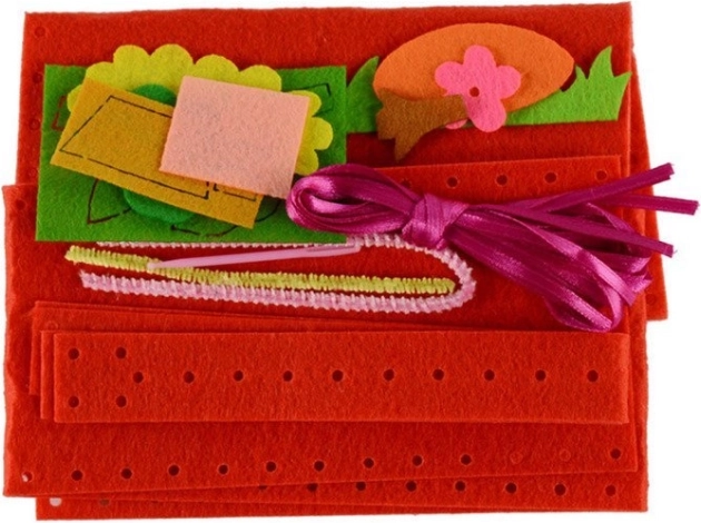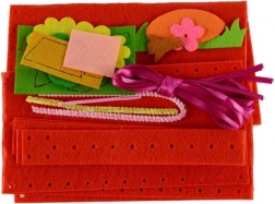 - matériaux colorés – pièces prédécoupées, fil coloré, grande aiguille en plastique, accessoires décoratifs