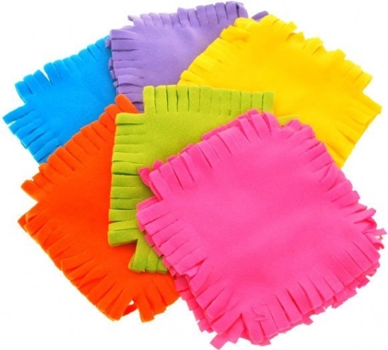 Le kit DIY « Fais-le toi-même » pour réaliser une couverture patchwork est idéal pour tous les petits créateurs. Chaque carré en polaire douce mesure environ 23 × 23 cm et, une fois les franges nouées entre elles, donne une couverture agréable, chaude et joliment colorée.