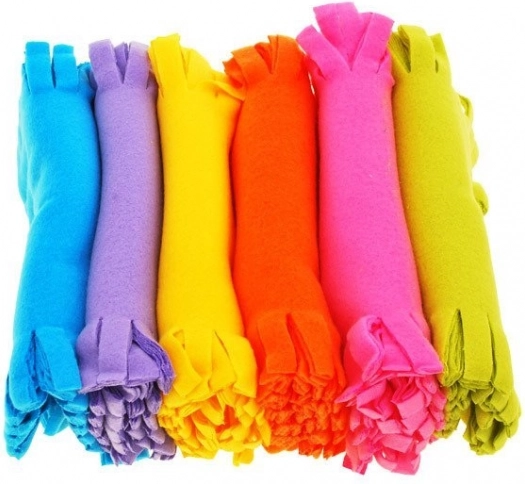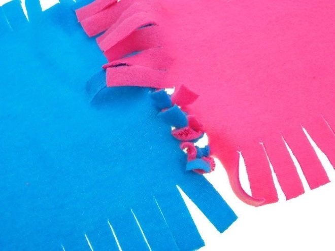 Chaque pièce possède des franges pré-découpées – il suffit de nouer les carrés entre eux et la couverture est prête, sans aiguille ni fil. Idéal même pour les débutants.