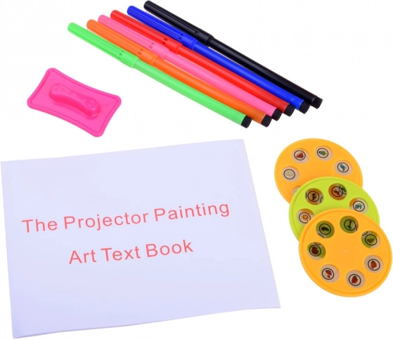- Projecteur avec couronne, 3 disques de motifs, 6 feutres, carnet de dessin, éponge
