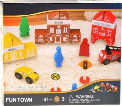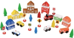 Les blocs ont une texture agréable et sont de taille appropriée pour les petites mains d'enfants. Exemples de dimensions : bâtiments (env. 3cm x 6cm x 3cm), ambulance (3,5cm x 5cm x 3cm), camion de pompiers (5,5cm x 8,5cm x 3cm), police (4cm x 6cm x 3cm), figures (5cm x 2,5cm x 1cm), panneaux de signalisation (hauteur 7cm) fabriqués en plastique.