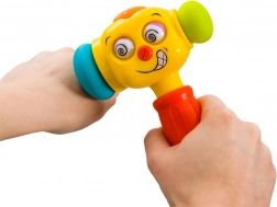 Appuyez sur le bouton sur la tête et le marteau joue 5 mélodies joyeuses tandis que la lumière se met à clignoter. Chaque petit coup déclenche en plus des sons et des lumières qui motivent les enfants à continuer de jouer.