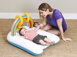 Le confort de bébé est assuré par une couche gonflable amortissante et un vinyle résistant, sans danger pour la santé, doté de valves de sécurité.