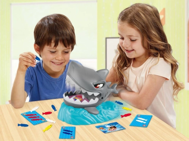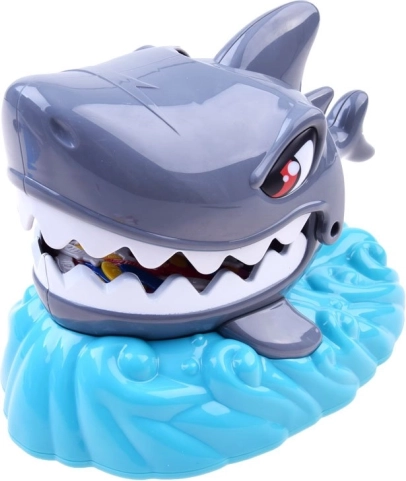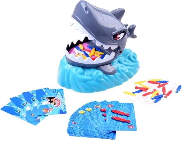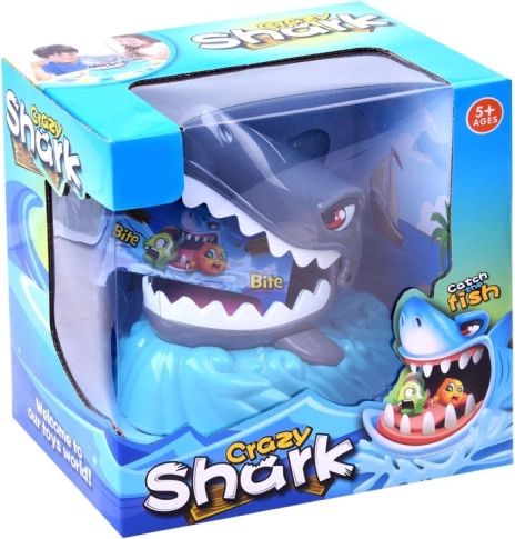 Le jeu Requin fou consiste à tirer une carte avec un nombre de poissons à retirer de sa bouche. Pendant le jeu, une musique joue, rendant l'atmosphère tendue, et la bouche et les yeux du requin s'illuminent, ajoutant au drame. Un mauvais retrait de poisson peut se solder par une prise de doigts, mais les dents sont sûres.