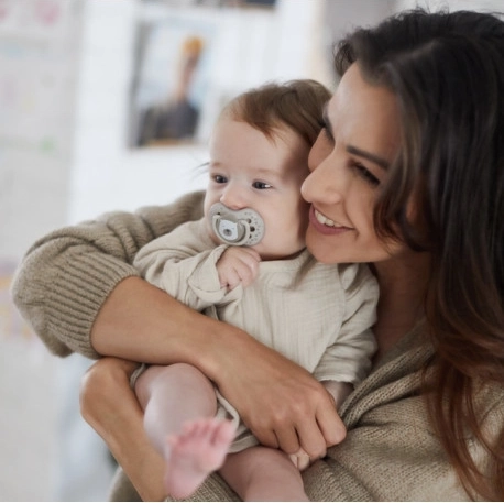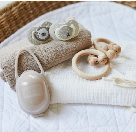 La sucette dynamique LOVI a été créée en collaboration avec des orthophonistes afin d’assurer le développement naturel et sain du palais, des dents et des gencives de l’enfant. La sucette dynamique symétrique en silicone LOVI a été testée cliniquement. Toutes les sucettes LOVI sont sans bisphénol A. Toutes les sucettes LOVI sont fabriquées en silicone, sans goût ni odeur. Les sucettes en silicone ont une durée de vie plus longue et sont plus faciles à maintenir propres. La tétine dynamique symétrique unique se ventile très bien et ne déforme pas le palais de l’enfant : - empêche le réflexe de mordillement de la sucette - permet une déglutition naturelle de la salive - favorise le développement sain de la parole et de l’occlusion - ne déforme pas le palais de l’enfant - se ventile très bien. La tétine dynamique est fabriquée en couches de silicone hétérogènes, elle s’allonge et se rétracte selon le rythme de succion de l’enfant. Sa forme symétrique rappelle le mamelon maternel. La forme de la tétine permet également d’insérer la sucette dans la bouche de l’enfant dans n’importe quel sens (sans côté supérieur ou inférieur). La forme découpée du bouclier permet à l’enfant de respirer librement par le nez. Il est fabriqué dans un matériau sûr, sans BPA. Le bord unique du bouclier est réalisé en matériau médical, agréable au toucher et évitant les marques de pression. Les ouvertures du bouclier permettent la circulation de l’air, éliminent l’accumulation de salive derrière le bouclier et préviennent ainsi l’irritation de la peau sensible de bébé. L’anneau de la sucette tient fermement, facilite la prise en main et la transmission de la sucette. Vous pouvez y fixer une chaîne ou un cordon. Les sucettes comportent un anneau de sécurité unique phosphorescent. Pour des raisons d’hygiène, la sucette est munie d’un capuchon en plastique. La boîte en plastique sert d’étui pour un rangement hygiénique des sucettes. La sucette LOVI a reçu une récompense des consommateurs finaux. Les sucettes sont proposées dans de nombreux motifs et coloris modernes. Contenu du kit : 2 pcs de sucette dynamique LOVI, 2 pcs de capuchon en plastique pour sucette, 1 pc de boîte en plastique. Mode d’emploi : Avant la première utilisation, stérilisez la sucette dans l’eau bouillante pendant environ 5 minutes pour des raisons d’hygiène. Après refroidissement, pressez l’eau résiduelle hors de la sucette. Avant chaque utilisation, lavez la sucette à l’eau tiède. N’utilisez aucun désinfectant chimique ! Des concentrations élevées de ces produits peuvent endommager les parties en plastique de la sucette. N’immergez jamais la sucette dans des substances sucrées ni des médicaments – vous exposez l’enfant au risque de caries de l’émail. Utilisez la sucette pendant 1 à 2 mois maximum, puis remplacez-la pour des raisons d’hygiène et de sécurité. Si la sucette entre entièrement dans la bouche de l’enfant, NE PANIQUEZ PAS – la sucette est conçue pour ne pas pouvoir être avalée et vous pouvez la retirer en toute sécurité. Retirez la sucette avec le plus grand soin possible. Conservez la sucette dans un étui propre, sec et fermé. Nous ne recommandons pas d’utiliser la sucette pour un enfant de plus de 3 ans. Avertissement ! Important pour la santé et la sécurité de votre enfant ! Vérifiez l’état de la sucette avant chaque utilisation. Accordez une attention particulière à la sucette lorsque les premières dents apparaissent. Testez la qualité de la tétine en l’étirant soigneusement dans tous les sens. Au premier signe de détérioration, jetez la sucette immédiatement et ne l’utilisez plus. Utilisez uniquement des attaches-sucettes conformes à la norme EN12586. N’attachez jamais la sucette avec des cordelettes, lacets ou rubans de vêtements. L’enfant pourrait s’étrangler. Ne laissez pas la sucette en plein soleil, près d’une source de chaleur ou dans des solutions désinfectantes plus longtemps que recommandé – cela pourrait affaiblir la tétine. Conservez le capuchon retiré hors de portée des enfants pour éviter tout risque d’étouffement. La sucette en silicone est conforme aux exigences suivantes : Directive 2001/95/CE du Parlement européen et du Conseil relative à la sécurité générale des produits, EN 1400-1 Produits de puériculture – Sucettes pour nourrissons et jeunes enfants – Partie 1 : Exigences générales de sécurité et informations sur le produit, EN 1400-2 Produits de puériculture – Sucettes pour nourrissons et jeunes enfants – Partie 2 : Exigences mécaniques et essais, EN 1400-3 Produits de puériculture – Sucettes pour nourrissons et jeunes enfants – Partie 3 : Exigences et essais chimiques.