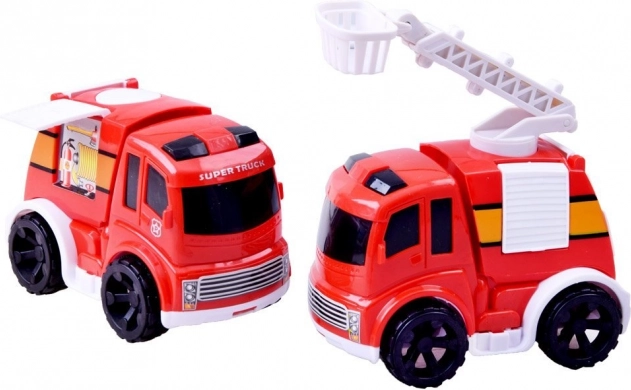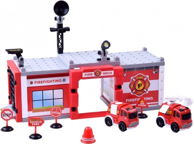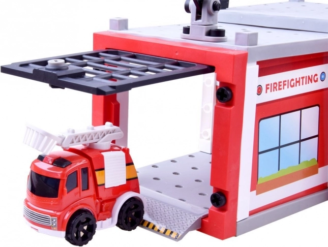 Inclus, deux petits camions rouges aux détails soignés, dont un avec échelle télescopique. Idéal pour des scénarios de secours et des déplacements autour de la station.