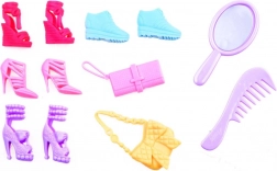 - Poupée, plusieurs pièces de vêtements (robes, t-shirts, pantalons), plusieurs paires de chaussures, sac à main, accessoires de coiffure (sèche-cheveux, lisseur, ciseaux, pulvérisateur), peigne, miroir