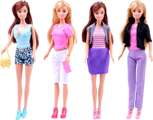Le coffret comprend des vêtements textiles de différentes couleurs et motifs, plusieurs paires de chaussures, un sac à main et un set d’accessoires de coiffure en plastique. Les enfants entraînent leur motricité fine, leur créativité et développent leur imagination en créant de nouveaux styles et coiffures.