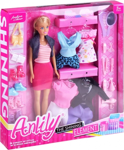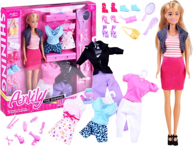 Poupée ANLILY avec tenues, chaussures et accessoires de coiffure