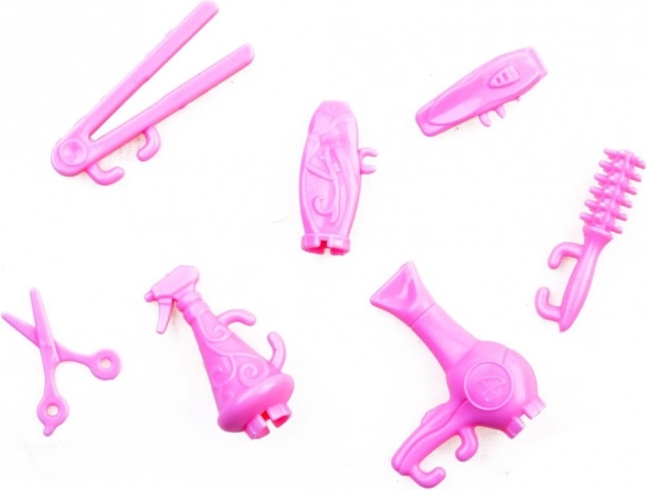 Sèche-cheveux, lisseur, ciseaux et pulvérisateur enrichissent le jeu de salon de beauté et stimulent la créativité lors du coiffage.