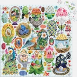 Un puzzle élégant et joyeusement coloré présentant des œufs de Pâques peints à la main, pour le plaisir des enfants comme des adultes. L’impression de qualité et le carton robuste garantissent un assemblage agréable et une longue durée de vie.