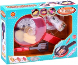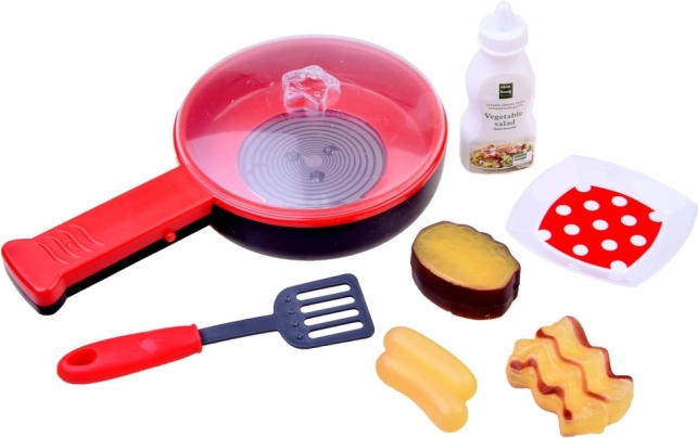Ce set de cuisine offre un amusement merveilleux pour chaque enfant qui aime les expériences culinaires. La poêle s'allume et émet des sons de friture lorsqu'on appuie sur le bouton du manche, ce qui rend le jeu plus réaliste. De plus, les aliments frits changent de couleur sous l'influence des lumières sur la poêle.
