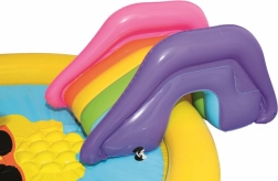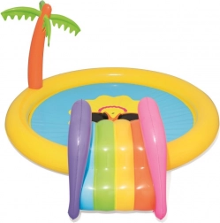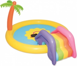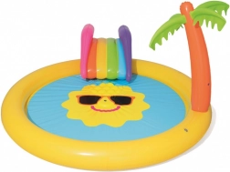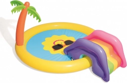Transformez votre jardin en mini parc aquatique ! L’aire de jeu aquatique pour enfants BESTWAY au motif de soleil souriant invite aux jeux et à la fraîcheur lors des journées chaudes. Il suffit de raccorder un tuyau d’arrosage et l’arroseur intégré crée une fontaine rafraîchissante. Le toboggan amovible aux couleurs vives ravira les petits aventuriers, tandis que le vinyle souple et robuste garantit des jeux confortables et en toute sécurité.