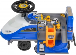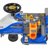 Sous le siège se trouve un parking de police pliable avec toboggans, ascenseur et coffre aux trésors, qui peuvent être actionnés manuellement.