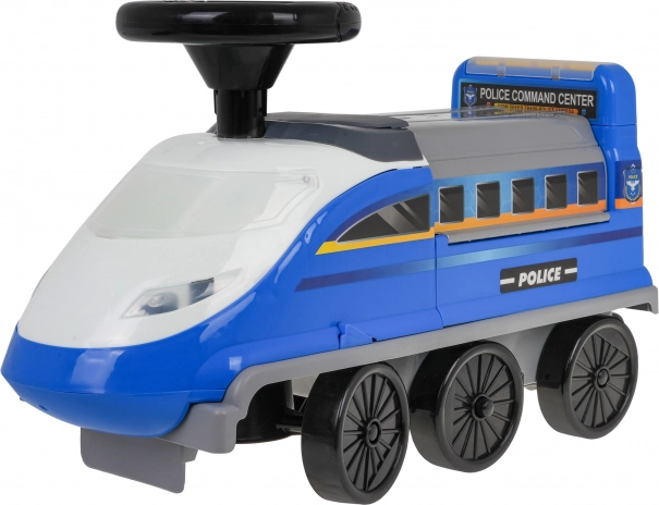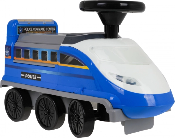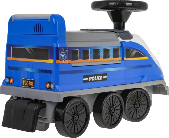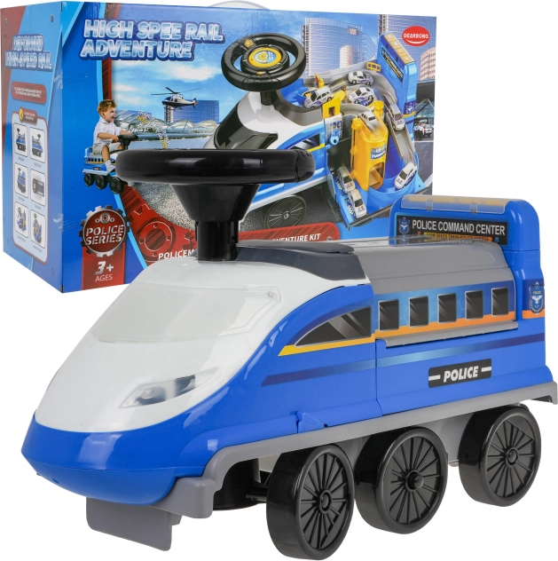 Le petit train interactif à chevaucher avec parking de police est idéal pour les enfants à partir de 3 ans. Ce jouet innovant à chevaucher est fabriqué en plastique de haute qualité et non toxique, garantissant une longue durée de vie et la sécurité des enfants. Le train est équipé de six roues, dont deux avant pivotantes, et sous le siège se cache un parking de police pliable avec de nombreux éléments mobiles, y compris des toboggans, un ascenseur et des barrières que vous pouvez ajuster selon vos préférences.
