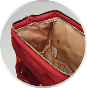 Le compartimentage ingénieux avec poche imperméable et matelas à langer lavable garde tous les essentiels rangés de manière claire et hygiénique.
