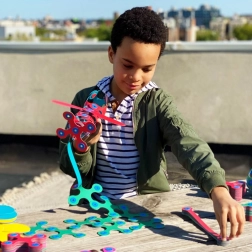 Clixo Rainbow offre des possibilités de construction infinies dans des couleurs vives. Les pièces flexibles en papier synthétique durable et recyclable, avec aimants intégrés, permettent des connexions solides et stables, tout en se pliant facilement pour s’adapter à l’imagination de l’enfant. Grâce à son format compact, le jeu est idéal en voyage et pour un rangement rapide – il suffit de clipser, assembler et emballer.