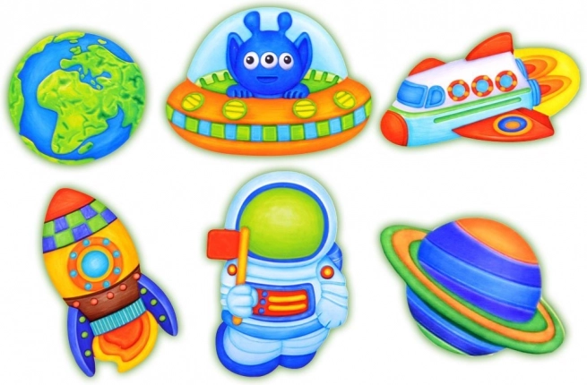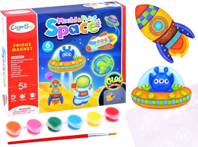Grâce aux moules et aux peintures fournis, les enfants réaliseront des aimants originaux avec des fusées, des planètes et des astronautes. La création est simple et ludique.
