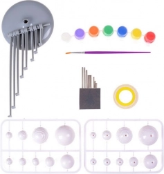 Le kit comprend des peintures spéciales qui permettent de créer des effets lumineux sur les planètes. Après exposition à la lumière, elles brillent dans l’obscurité, ce qui renforce l’attrait visuel du modèle.