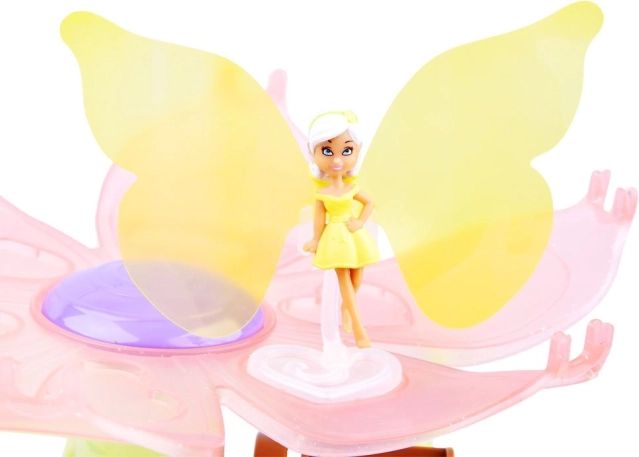 Une figurine colorée aux ailes marquantes et à la base fleurie invite à de longs jeux dans l’univers féerique WING FAIRIES.