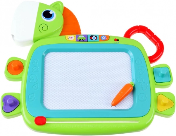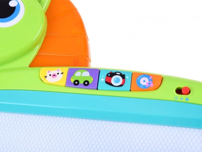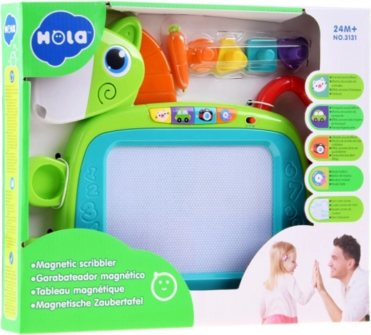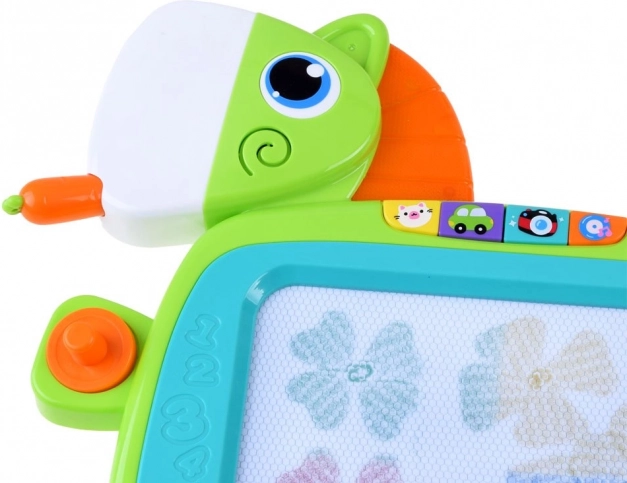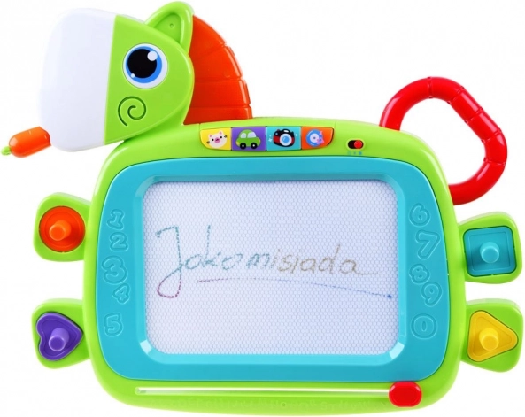 Cette tablette magique colorée offre de nombreuses fonctionnalités étonnantes qui encouragent la créativité et le développement de la motricité fine des enfants. Vous pouvez y dessiner, écrire avec le stylet ou créer des motifs à l’aide des tampons. Une fois le dessin terminé, l’image peut être facilement effacée grâce au mécanisme d’effacement coulissant. Le jeu interactif est accompagné d’effets lumineux et sonores :