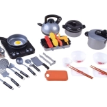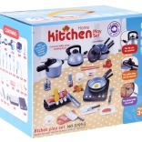 Ce set de cuisine portable est idéal pour tout petit chef. Il offre un équipement complet comprenant une théière, une plaque de cuisson, une cocotte-minute et de nombreux autres accessoires nécessaires pour cuisiner et griller.