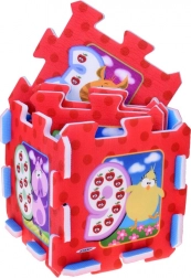 Les pièces s’emboîtent comme un puzzle et permettent de créer une surface plane, mais aussi des formes 3D (cubes ou petites maisons), augmentant le plaisir et le développement de la perception spatiale. Le tapis se maintient aisément – il suffit de l’essuyer avec un chiffon humide. La surface antidérapante contribue à une meilleure stabilité pendant le jeu.