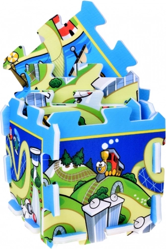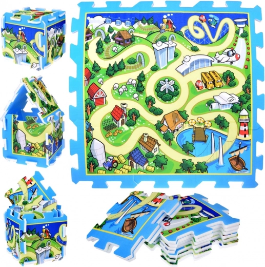 Chaque pièce possède un bord emboîtable (type puzzle) pour une connexion rapide sans glisser. Le tapis permet en plus de construire un cube 3D ou de petites maisons, faisant passer le jeu du plan à l’espace. Idéal pour la chambre d’enfant, la terrasse et le jardin.