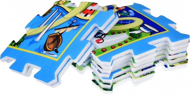 Ce tapis/puzzle en mousse au motif de ville et de routes transforme toute pièce en une zone de circulation ludique. Les pièces en mousse souple mais résistante créent une surface amortissante et sûre pour s’asseoir, ramper et faire ses premiers pas. Les enfants peuvent faire rouler des petites voitures sur les routes, apprendre les couleurs et les formes et développer leur imagination.