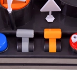 - Plateaux tournants, leviers, bouton de lancement, horloge numérique avec mélodie
