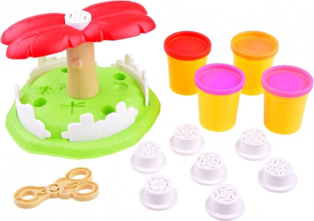 Le kit permet aux enfants de créer diverses formes et fleurs multicolores à l’aide de quatre pots de pâte à modeler colorée.
