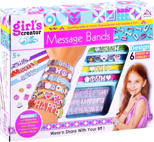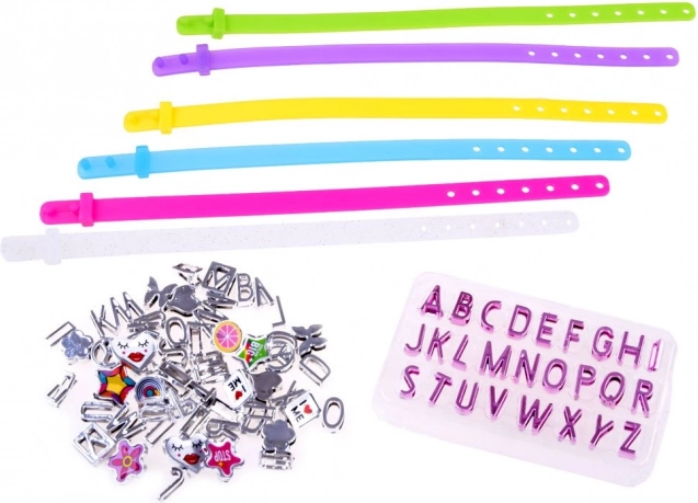 Le kit créatif contient tout le nécessaire pour créer de beaux et créatifs bracelets. 5 rubans de différentes couleurs avec fermeture réglable permettent un ajustement pour différentes tailles de poignets. Les lettres et décorations en plastique peuvent être librement combinées pour créer des noms, des mots de passe et des motifs – les possibilités sont infinies! Ce divertissement développe à la fois la créativité, la dextérité et l'imagination.