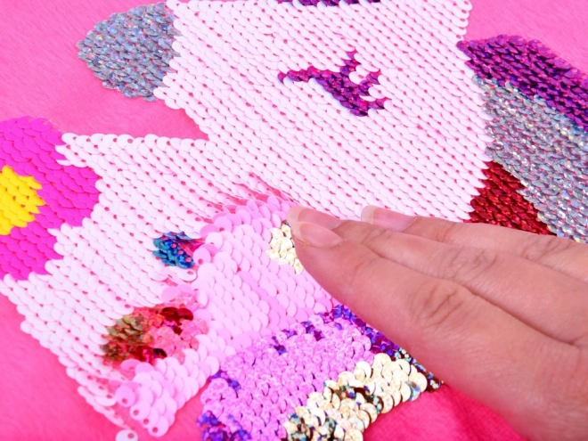 Les sequins réversibles permettent de changer de couleur et ajoutent une touche ludique au coussin.