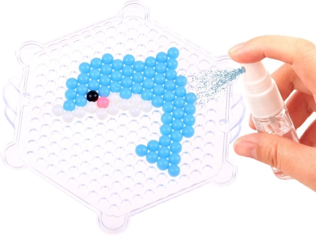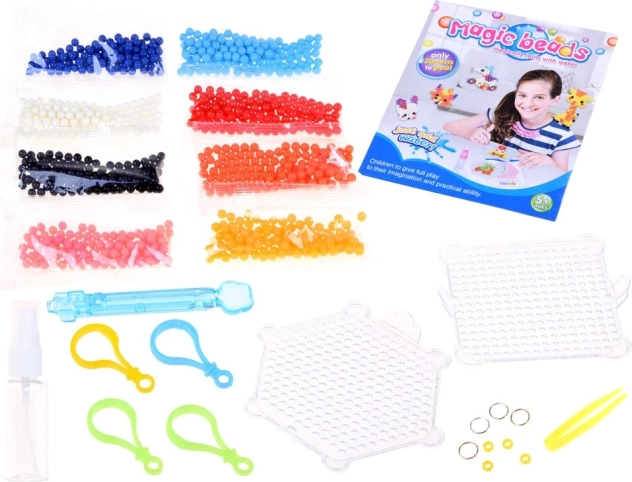 Perles magiques à l’eau permettent aux enfants de créer des motifs et des décorations originaux sans utiliser de chaleur. Il suffit de disposer les perles sur un gabarit et de les vaporiser d’eau.